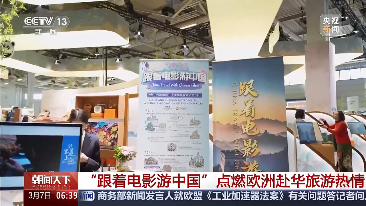 在当地时间3月3日至5日举办的2026年柏林国际旅游交易会上,由国家电影局、中央广播电视总台主办的“跟着电影游中国”活动再次亮相中国展区,本次活动以“电影+旅游”的融合推广方式,向国际旅游业界和公众展示中国电影与文旅资源联动发展的新成果。