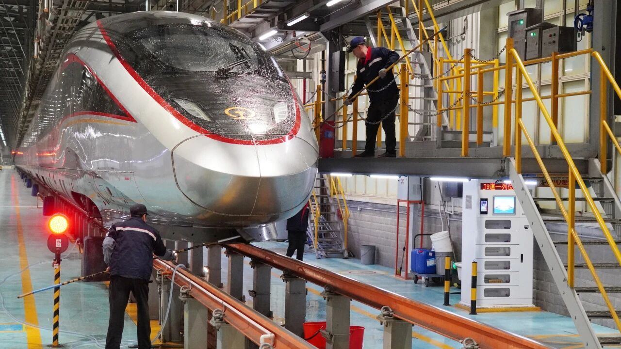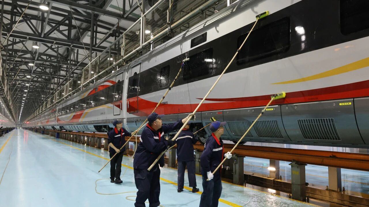 连车头都有“精致护理” 复兴号专属“洗护方案”全流程揭秘