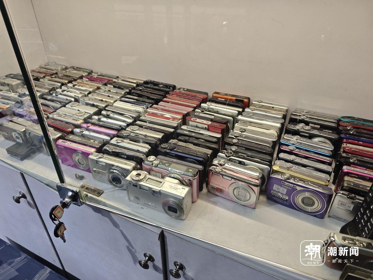 小店入口的一处展柜里,陈列着几十台二手CCD相机,都是这些年回收的。金先生说,店里各种年代的二手相机有上千台。