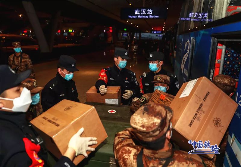 武汉铁路公安局组织民警协助运物资,做好现场安全防护,确保人员顺利乘降登车。
