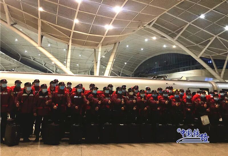 2月1日,150人的某部医护团队由石家庄搭乘G4633次复兴号列车抵达武汉站,医疗物资同车到达。