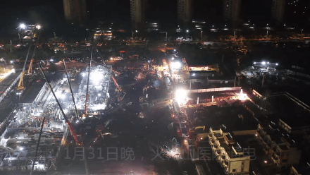 你需要国家电网,260多名电力职工不眠不休24小时连续施工。需要中国电建湖北装备公司6台10箱式变电站,需要在1月31日前完成两条10千伏线路迁改、24台箱式变压器落位工作、8000米电力电缆铺设,并按时开始送电。