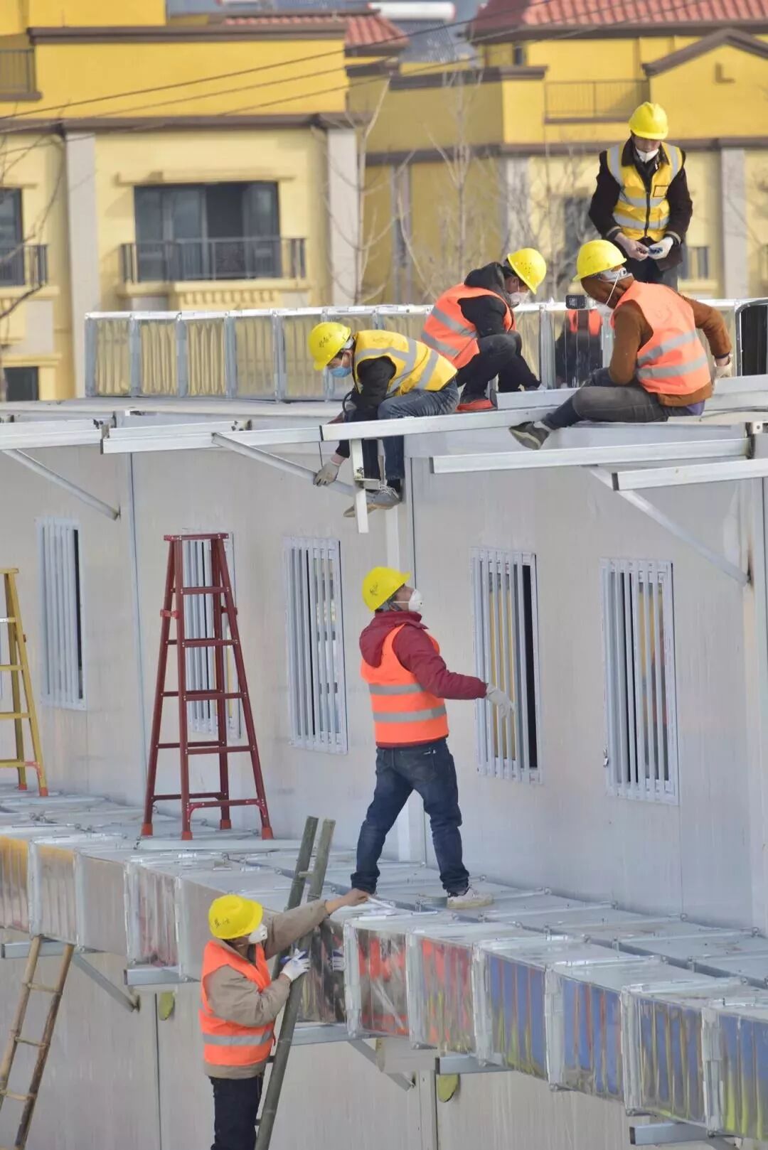 最后,让专业团队安装好格力空调,等海尔的工程师因为道路封闭背着冰箱赶到现场,把美的饮水机、热水器安置到位。门外,由宇通客车和江铃集团捐赠的几十辆负压救护车已经整装待发。