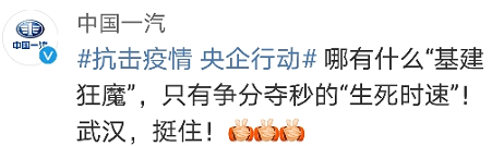 你需要武汉航发集团,迅速进场开始场地平整、道路以及排水工程施工;同时由多家行业龙头企业高能环境、东方雨虹、兴源环境、银江环保等组成紧急工程建设团队,负责防渗工程、污水处理和医疗垃圾转运设施建设;还要在最困难的时候召唤中铁工业旗下中铁重工,中国铁建旗下中铁十一局、十四局火速增援追赶工期。