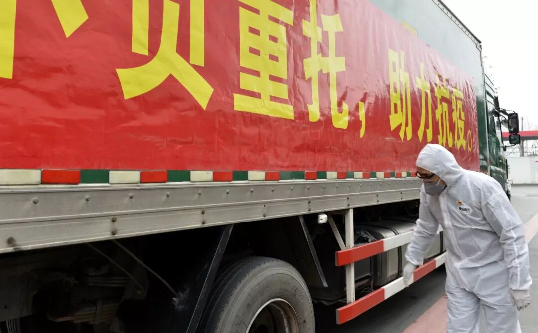 2月14日下午1点,一辆载有口罩、防护服等防疫捐赠物资的邮车,从成都邮区中心局出发驶往武汉。