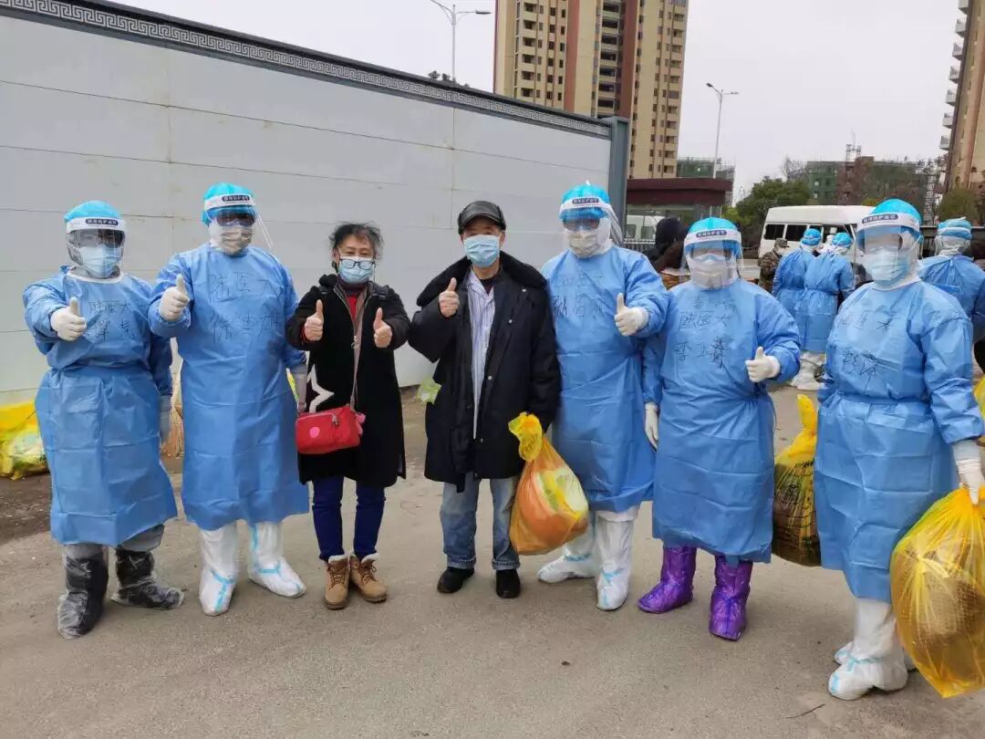 火神山医院副院长徐迪雄与病区主任、护士长及经管医师帮助他们拿着随身物品,将他们送到接送的出租车上。望着他们离去的身影,我们开心地笑了。但同时百感交集,回想他们入院之初,生理和心理上都承受着巨大压力。但是他们一直相信,解放军医疗队有能力让他们好转起来,他们一直非常配合治疗。