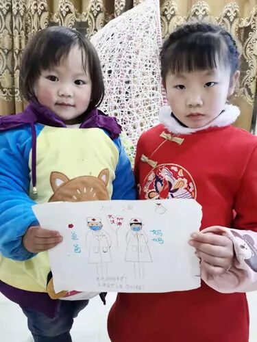 两个懂事的孩子为父母画了一幅画,鼓励爸妈加油。(受访者供图)