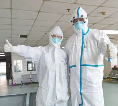 米莹与郝旭东是两口子,结婚8年多。自1月22日参与新冠肺炎疫情救治以来,这是两人第一次见面。虽是见面,可隔着厚厚的防护服,根本看不清对方的脸。