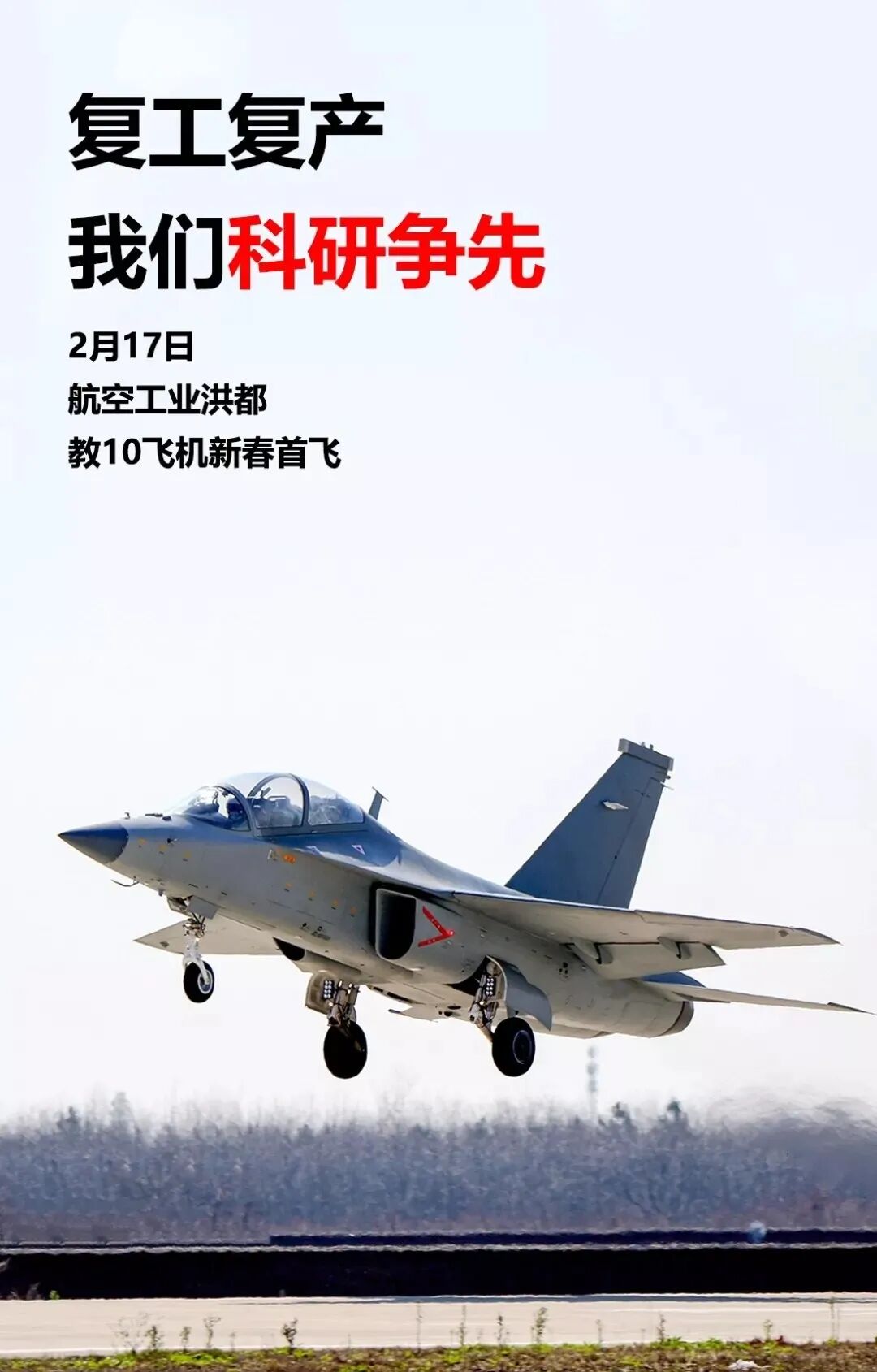 2月17日,航空工业洪都完成教10飞机的新春开飞。