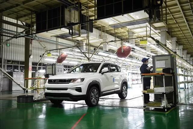 汽车在生产线上自动地根据工序传输,工业机器人在流水线上有序地工作着,物流小车按照规定线路准确地往返运输,宽敞繁忙地厂房内只有零星的佩戴着口罩的工人进行操作、巡检。整个工厂应用700余台机器人,自动化率达90%以上,比传统汽车制造工厂减少操作工人56%。通过工业物联网平台,每天采集制造数据5000万条,还可对设备运行实时监控并预警。