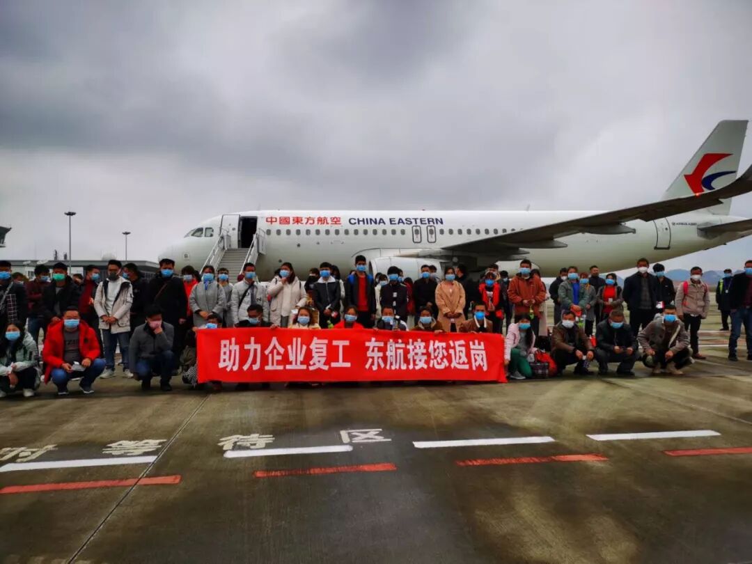 2月21日14:49分,从贵州兴义市飞来的东方航空MU5566航班平稳降落在宁波栎社国际机场。这是东航首班定制复工复产包机航班,搭载了155名来自贵州省黔西南州贞丰县、义龙新区的务工人员,返岗宁波市海曙区9家制造企业。该航班也标志着东航助力企业复工复产的定制包机服务全面启航。根据目前已确认的计划,2月23日、24日,东航还将执行西安-义乌、郑州-浦东复工包机航班,运送近300人。