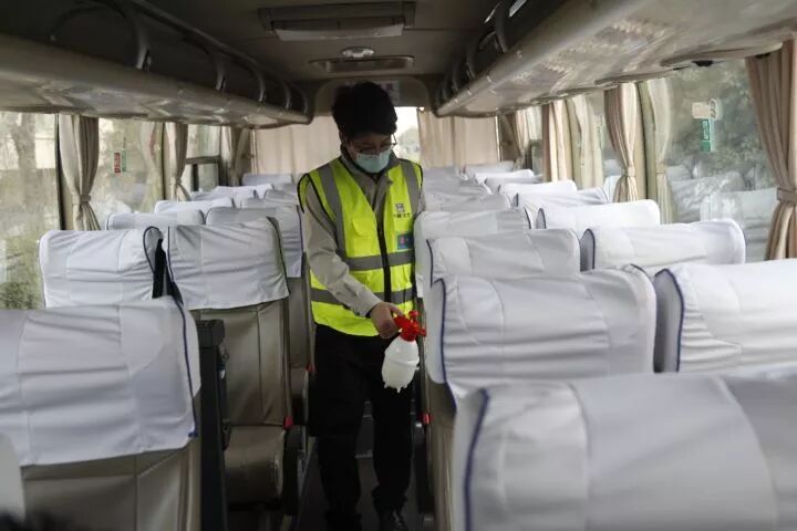 除了登记、检查、测温,根据要求,返济专车满载率不超过50%,确保乘客之间保持一定的距离,乘客隔位、分散就坐,乘车人员、随车人员和驾驶员要佩戴口罩。运输过程中人员用餐实行分餐制。
