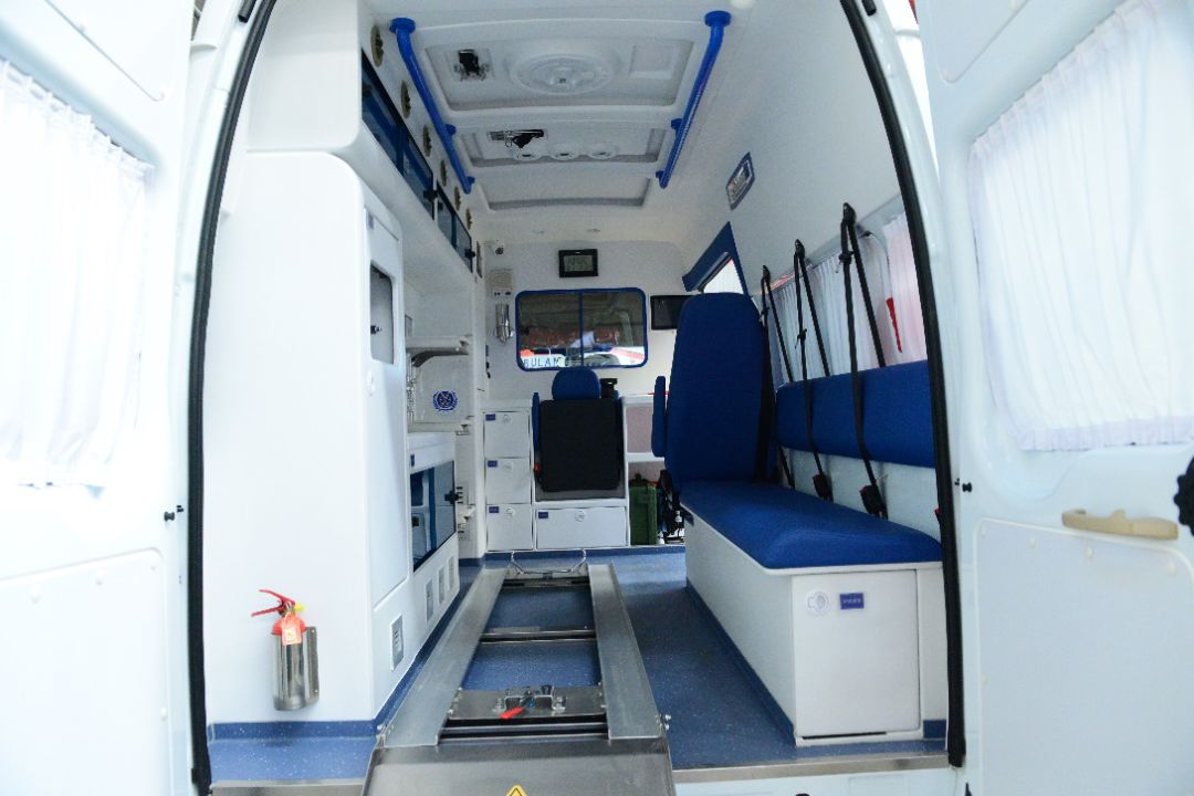 该型负压式救护车医疗舱配置车载负压系统,利用先进技术手段,使车内气压低于外界大气压,将车内空气进行无害化处理后排出,对粒径0.3μm微粒气溶胶滤出率大于99.97%,同时,车内空气自上而下流动,可大幅减少在救治和转运传染病人时医护人员交叉感染的机率。