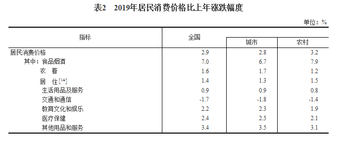 全年居民消费价格比上年上涨2.9%。工业生产者出厂价格下降0.3%。工业生产者购进价格下降0.7%。固定资产投资价格上涨2.6%。农产品生产者价格上涨14.5%。12月份,70个大中城市新建商品住宅销售价格同比上涨的城市个数为68个,下降的为2个。