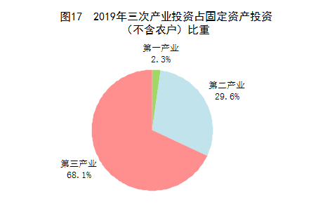 在固定资产投资(不含农户)中,第一产业投资12633亿元,比上年增长0.6%;第二产业投资163070亿元,增长3.2%;第三产业投资375775亿元,增长6.5%。民间固定资产投资311159亿元,增长4.7%。基础设施投资增长3.8%。六大高耗能行业投资增长4.7%。