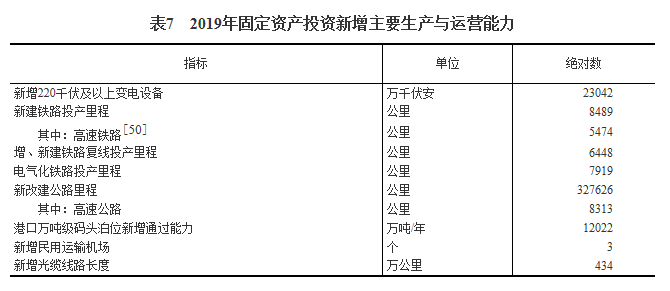 基础设施建设成绩斐然。交通运输设施不断完善。2019年末,高速铁路营业总里程超过3.5万公里,占全球高铁里程2/3以上;高速公路里程超过14万公里,稳居世界第一。邮政快递服务能力提升。2019年邮政行业业务总量达到16230亿元,比上年增长31.5%;快递业务量635.2亿件,增长25.3%。信息通信发展步伐加快。2019年移动互联网用户接入流量比上年增长71.6%。5G商用稳步推进,大数据、云计算、人工智能等现代信息技术快速发展,“网络强国”建设迈出坚实步伐。