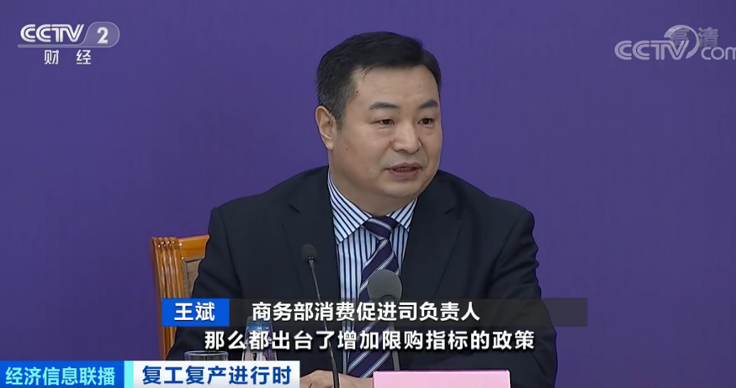 商务部消费促进司负责人王斌表示,一是优化汽车限购政策。比如广州、深圳、杭州都出台了增加限购指标的政策,前不久上海也增加了牌号拍卖指标,贵阳取消了限购措施,海南取消了新能源汽车限购;二是实施新车消费补贴;三是开展“以旧换新”;四是加快老旧汽车淘汰;五是取消皮卡进城限制;六是促进二手车交易。近期,汽车企业积极应对疫情对汽车消费的影响,采用线上体验选车、签约购车以及“互联网直播+上门试驾”等新的零售方式,为客户提供“无接触”的服务。