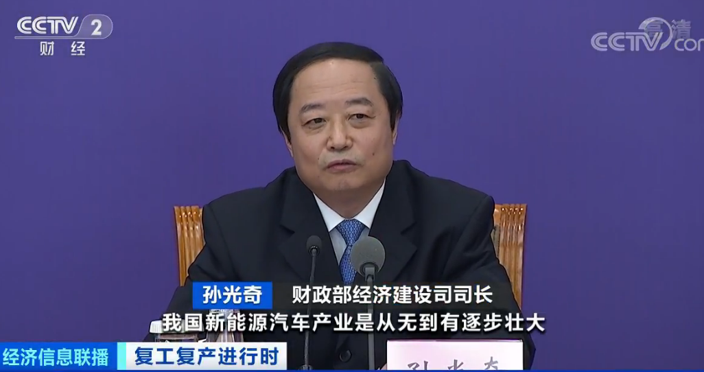 财政部经济建设司司长 孙光奇:我国新能源汽车产业从无到有逐步壮大,已经连续五年产销量世界第一位。新冠肺炎疫情对新能源汽车市场冲击比较大,1-2月份新能源汽车产销量同比分别下降了63.8%和59.5%,延长优惠支持政策,有助于拉动汽车市场消费,对冲疫情影响。同时,也有利于支持相关行业和企业加快复工复产。