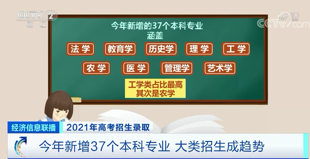 随着各地高考成绩的陆续公布,填报志愿的关键时刻又到了。根据教育部公布的2021年高校招生专业目录,今年新增了37个本科专业,高校按照学科大类招生已成为一种趋势。