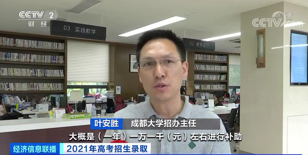 成都大学招办主任 叶安胜:2021年,我们投放到乡村振兴计划的一共有26个人,这部分学生的学费、住宿费和部分补助费一年大概是11000元,经四年学习后,回到他们家乡进行建设。