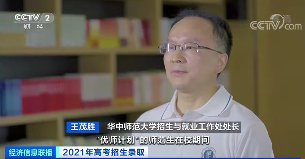 华中师范大学招生与就业工作处处长 王茂胜:我校今年“优师计划”共150个招生计划。主要面向22个中西部省(市、区),“优师计划”的师范生,在校期间享受免除学费、免缴住宿费,补助生活费,“优师计划”师范毕业生经双向选择到生源省份定向县县域中小学任教6年,入编入岗。