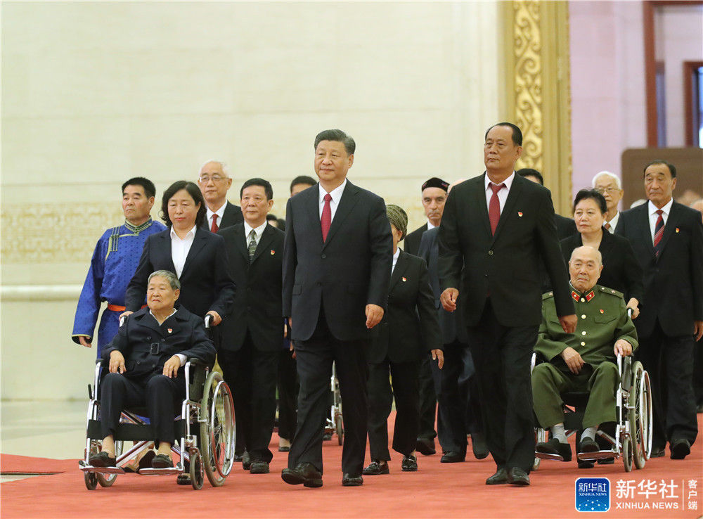 6月29日,庆祝中国共产党成立100周年“七一勋章”颁授仪式在北京人民大会堂金色大厅隆重举行。习近平等领导同志在颁授仪式前会见全国“两优一先”表彰对象。新华社记者 申宏 摄