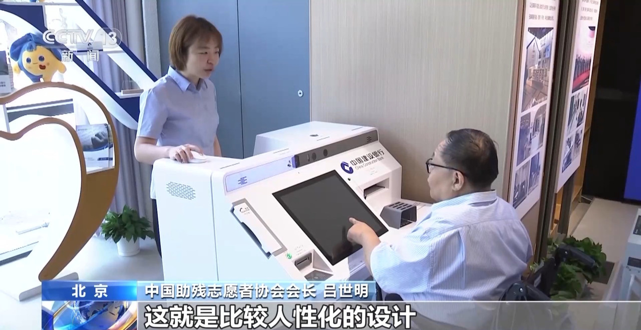 国家无障碍环境展示馆,通过图文视频、模型、实物等方式,展示了我国无障碍环境建设的发展历程,全国43个无障碍好设计,以及新时代我国无障碍环境建设方面的成就。这个银行柜台,就是过去一年来无障碍设施改造的最新应用。