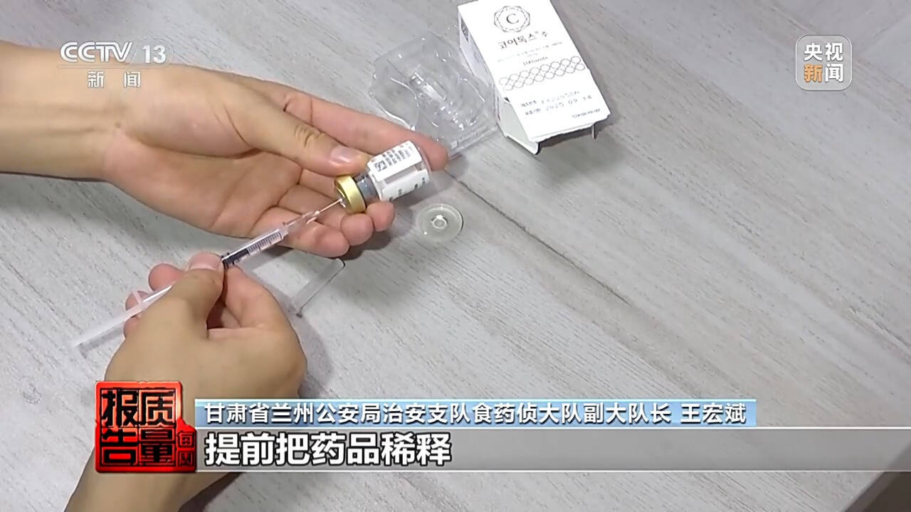 甘肃省兰州公安局治安支队食药侦大队副大队长 王宏斌:给客人注射前的准备时,他们会刻意在另外一个操作间,提前把药品稀释,先抽取到注射器里,让消费者无法见到药品的相关包装,这样也就不了解药品的来源和品牌了。