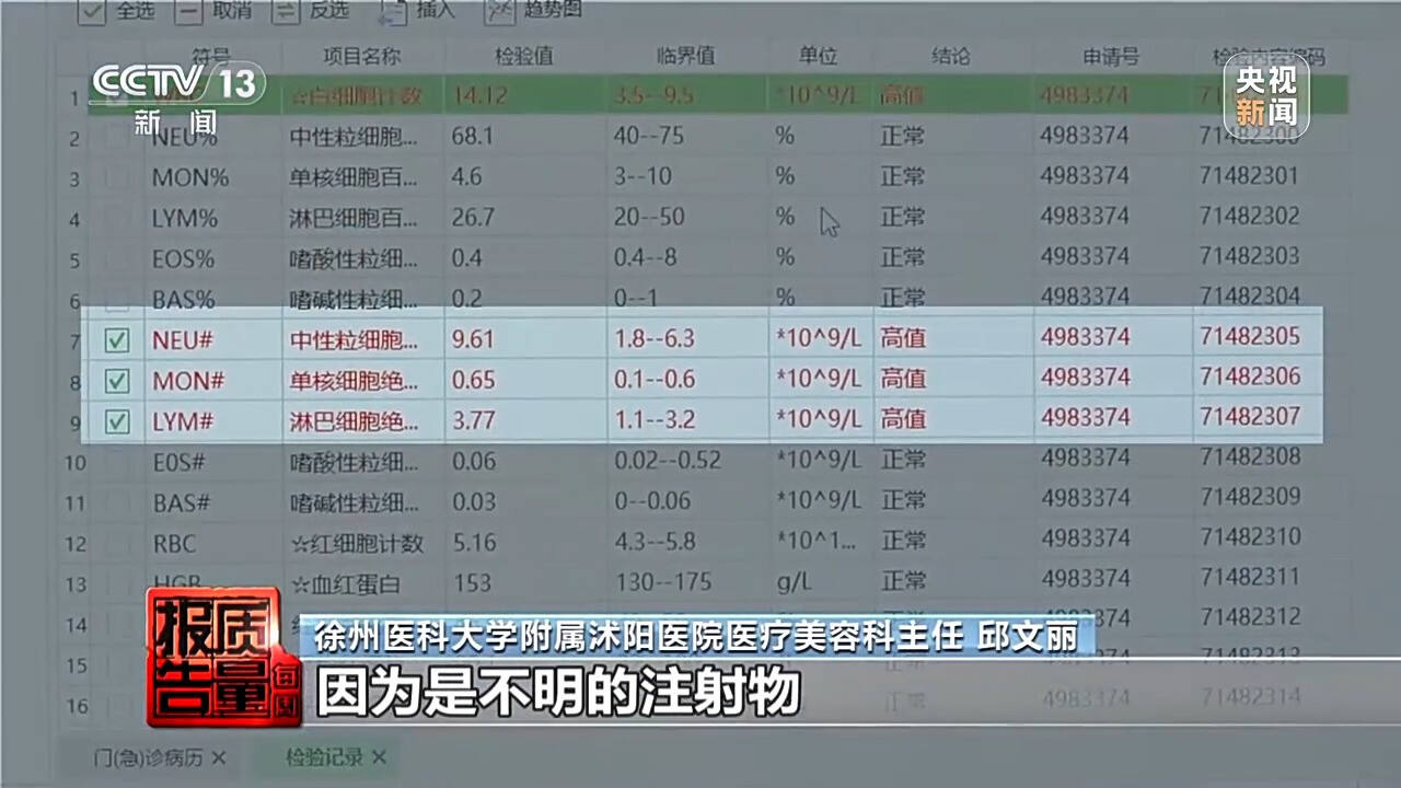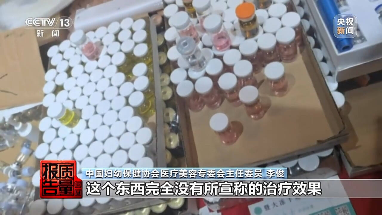 中国妇幼保健协会医疗美容专委会主任委员 李俊:没有经过正规、合法的途径获得相应资质,这个东西完全没有所宣称的治疗效果。还有一种,他会自己去把几种东西配到一起,包装一个比较绚丽的名称去告诉病人,然后去打到病人身上去。这种东西,修复的医生就很难判断它是什么,怎么去处理了。