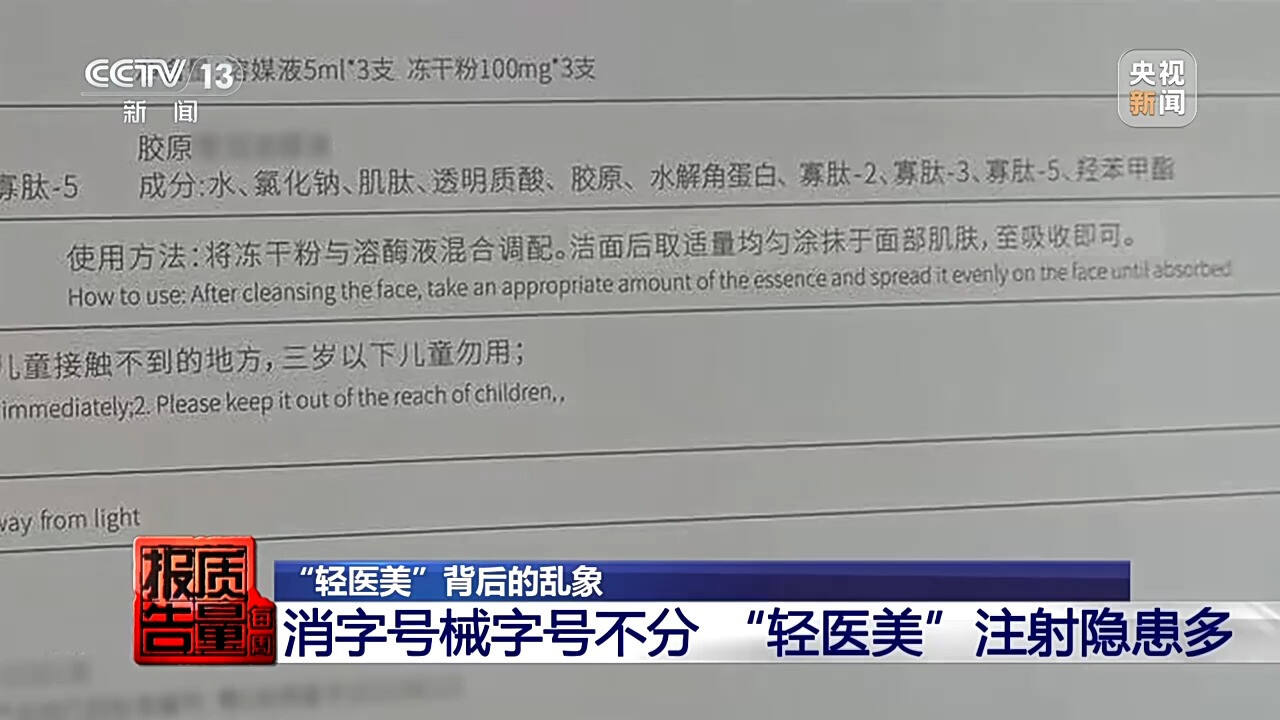 要将妆字号涂抹类的化妆品当成械字号的注射类产品注射进消费者的身体里面,还一再声称是安全的。与此同时,记者还发现,为了规避这些违规行为被相关执法部门发现和查处,很多的机构和美容院在所谓的“轻医美”现场根本就不放置这些产品。