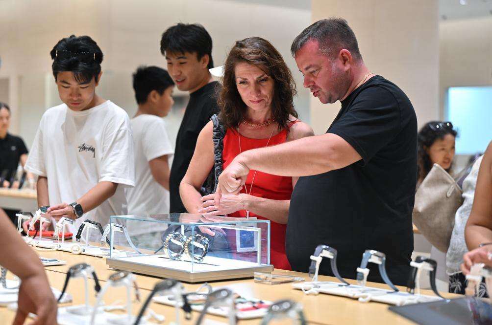 11月9日,外国顾客在三亚国际免税城选购商品。新政将适用人群扩至离境旅客。新华社记者 郭程 摄