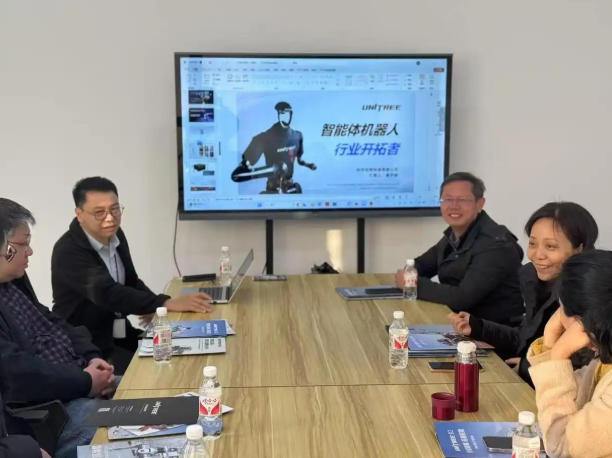 全国人大代表、浙江宇视科技有限公司研究院院长、杭州电子科技大学教授周迪(右三)在调研具身智能企业。受访者供图