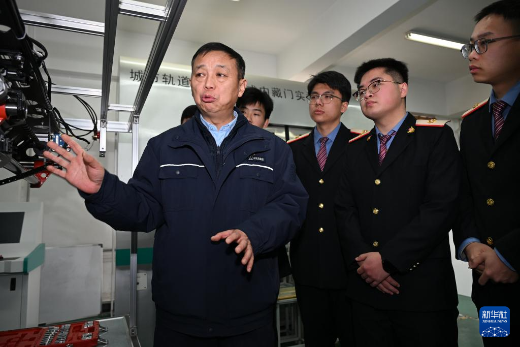 2月4日,在位于陕西省渭南市的陕西铁路工程职业技术学院实训室,董宏涛(前左一)为学生指导业务。