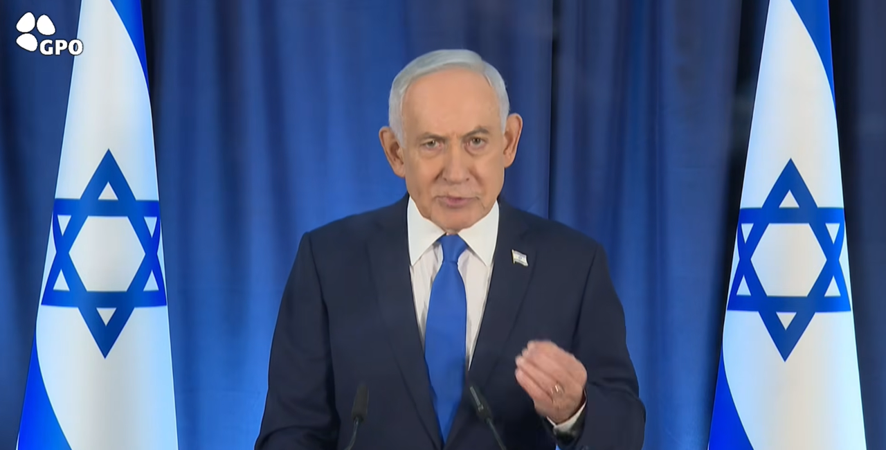 内塔尼亚胡12日晚举行新闻发布会(图片来自以色列政府新闻办公室)
