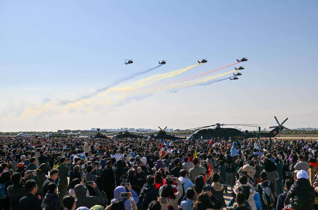 10月18日,直升机进行飞行表演。当天,第七届中国天津国际直升机博览会迎来首个公众开放日。新华社记者 孙凡越 摄