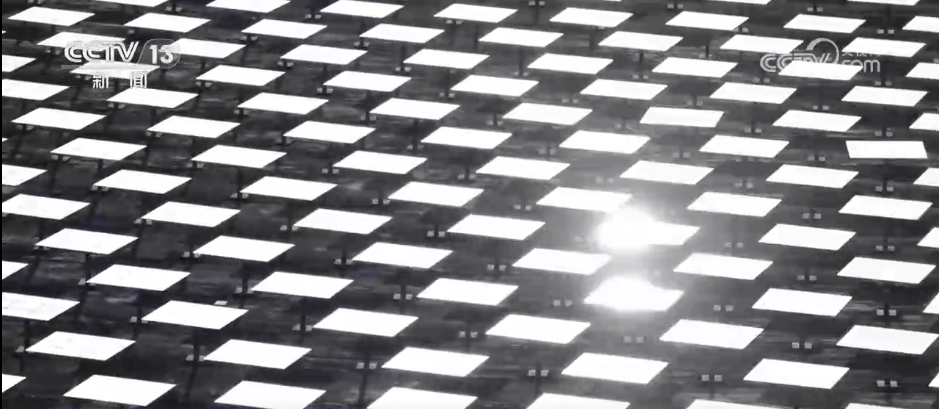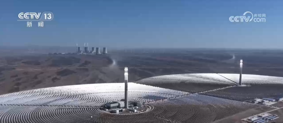 这是沙海日出的一瞬间,2.7万面定日镜被同步唤醒,这里每年的发电量相当于替代56万吨燃煤。高原起风的瞬间,93米长的叶片加速转动,每转一圈发出的电足够三口之家用上2天。