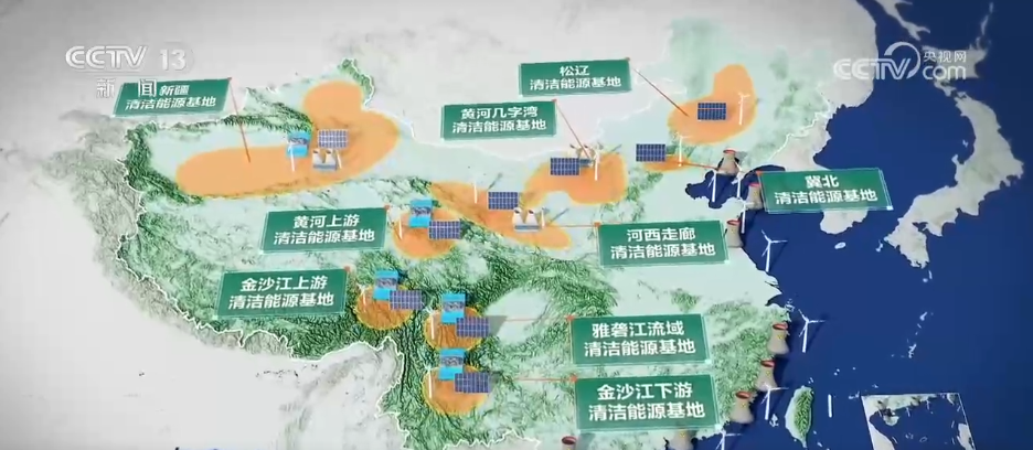 长江干流上,六座大型水电站拦江而立,串联成世界最大的清洁能源走廊。“沙戈荒”新能源基地里,昔日寸草难生的土地变身蓝色光伏的海洋。“十四五”规划布局的九大清洁能源基地,有七个都在西部地区。如果把五年间全国新增的光伏板铺展开,总面积可以覆盖53万座足球场;把新增的风机叶片依次连接,长度相当于从中国最东端到最西端走一个来回。
