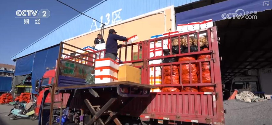 在河南万邦国际农产品物流城,运输蔬菜的货车正在排队进入市场,工人忙着装卸、分拣、发货。这几天,山东、河北等产地的冬季大棚蔬菜陆续上市,不少品类的蔬菜价格较上月明显回落。
