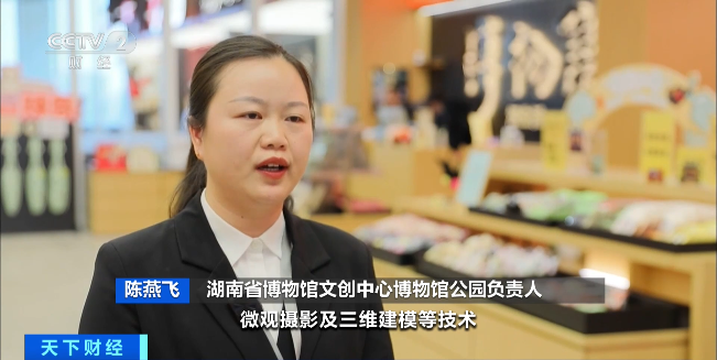 湖南省博物馆文创中心博物馆公园负责人 陈燕飞:我们首先通过高精度扫描、微观摄影及三维建模等技术,对马王堆文物中的纹样、文字等核心美学元素进行精准采集与提取,形成原始数字素材库。通过联手签约设计师、插画师进行二次创作,使其既保持文化基因,又符合当代审美,创造了实物、产品加数字的新型消费体验。