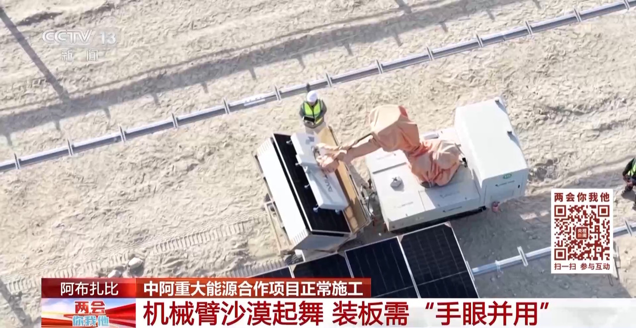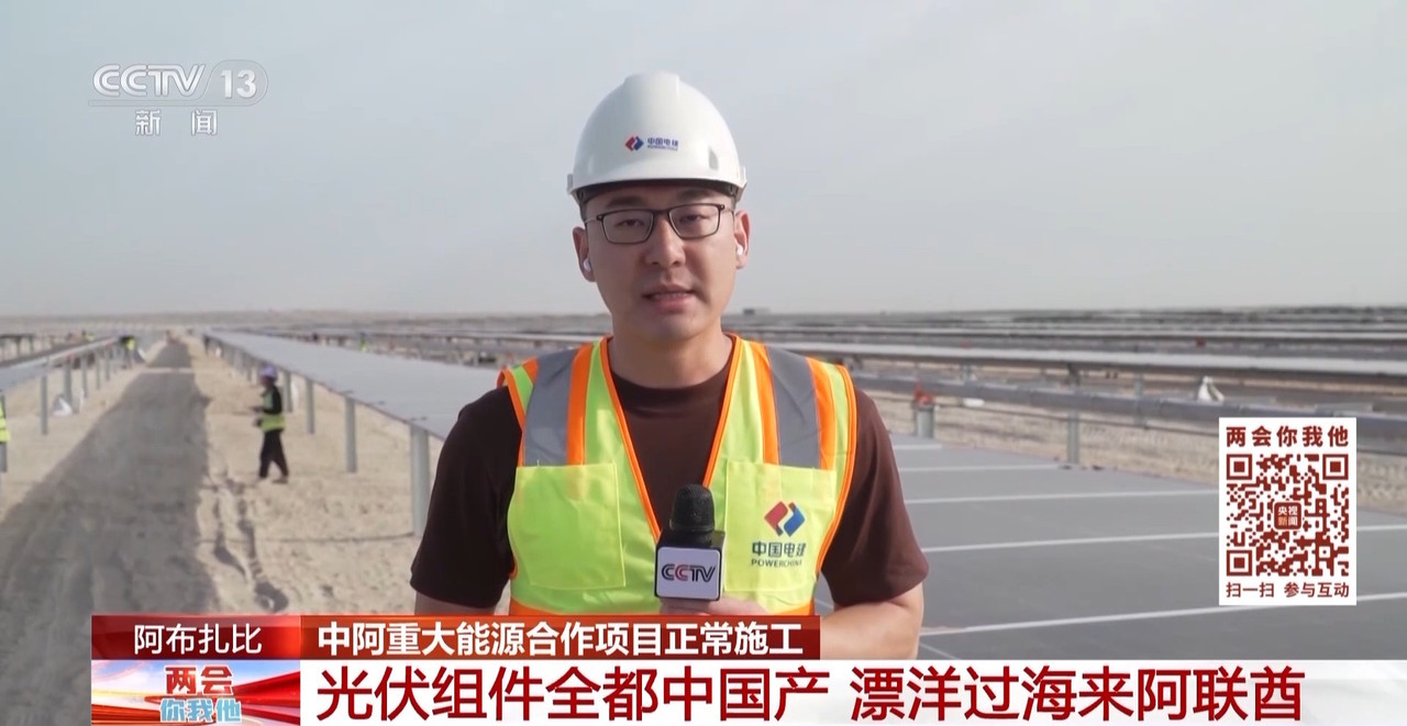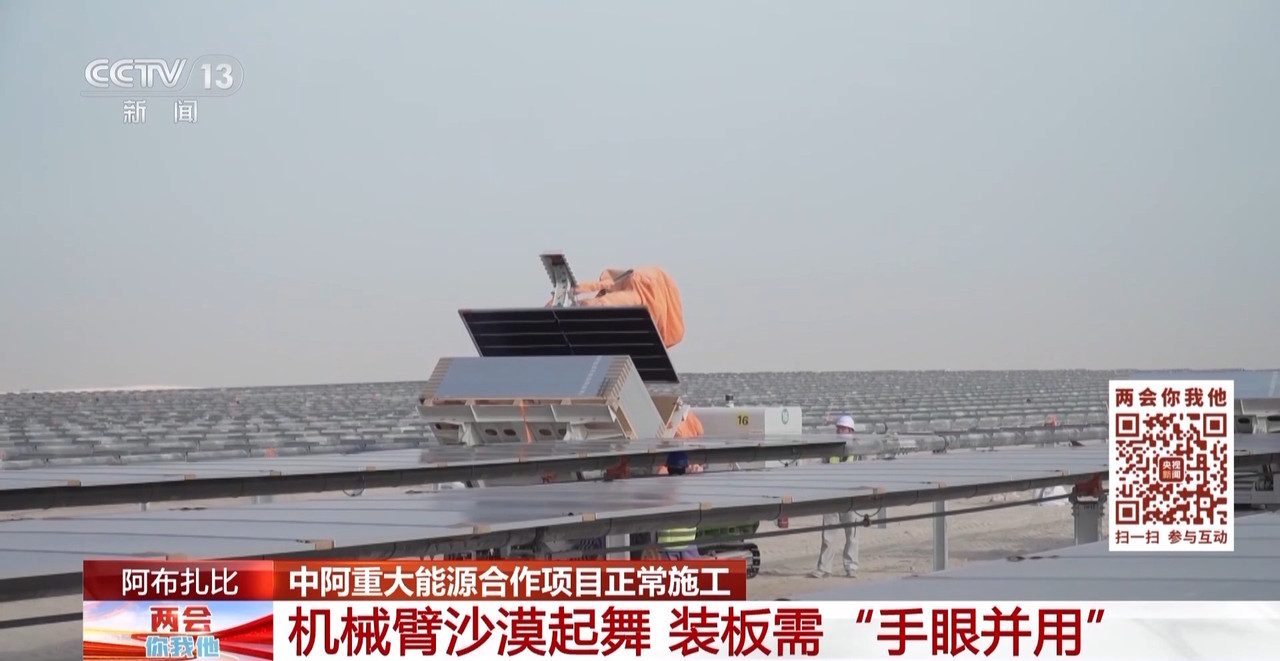 人工智能正在成为重塑国际能源格局的新变量,全球很多国家也在加快新能源的布局。中国的光伏产业,给很多国家带去了解决方案。今天我们一起去中国阿联酋重大能源合作项目——阿布扎比阿吉班光伏发电项目的施工现场看看。
