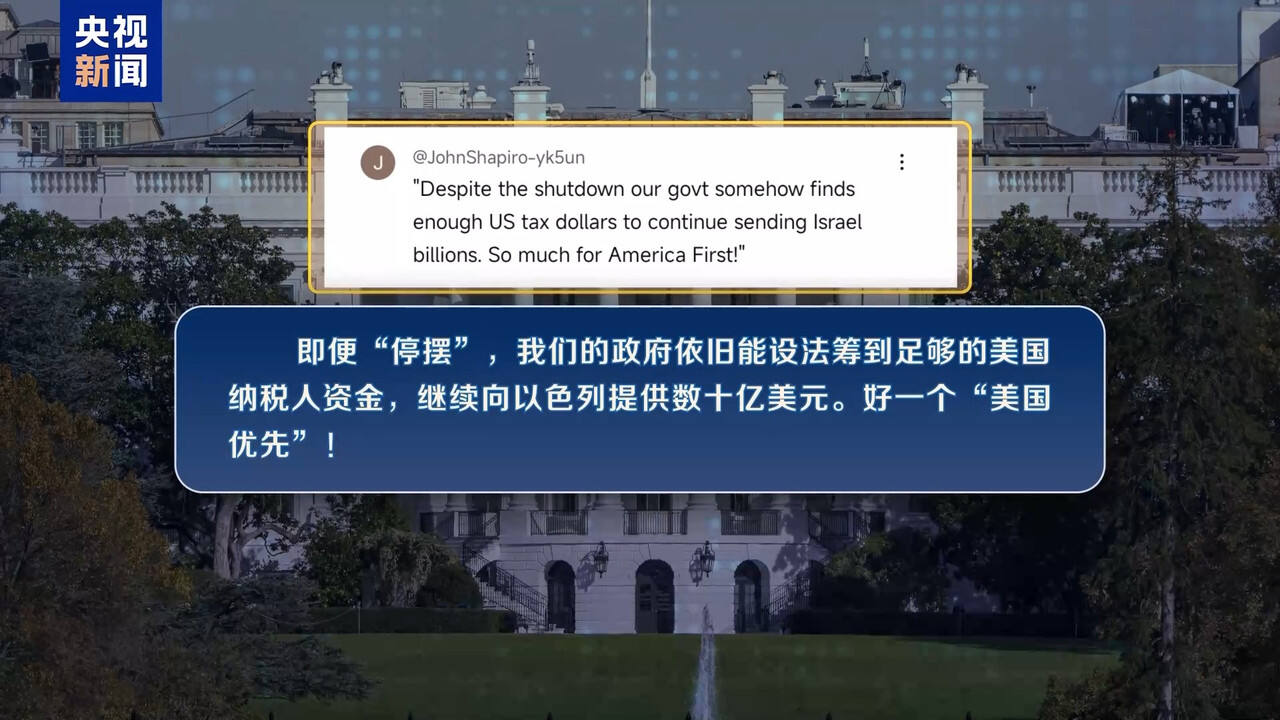 还有网友讽刺道:即便“停摆”,我们的政府依旧能设法筹到足够的美国纳税人资金,继续向以色列提供数十亿美元。好一个“美国优先”!