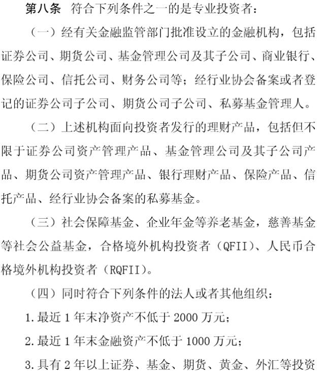 我们先来看看,《办法》对于专业投资者的定义。对于个人而言,最重要的是要满足两个条件: