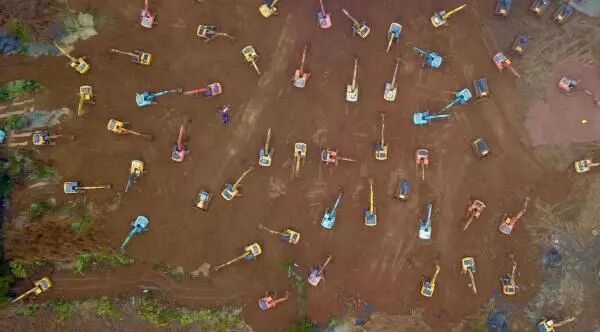 1月23日晚,35台反铲、10台推土机、8台压路机已到达现场,开始土地平整工作。相关设计方案将在今日完成。目前,现场已有上百台挖掘机等机械进场进行场地平整。