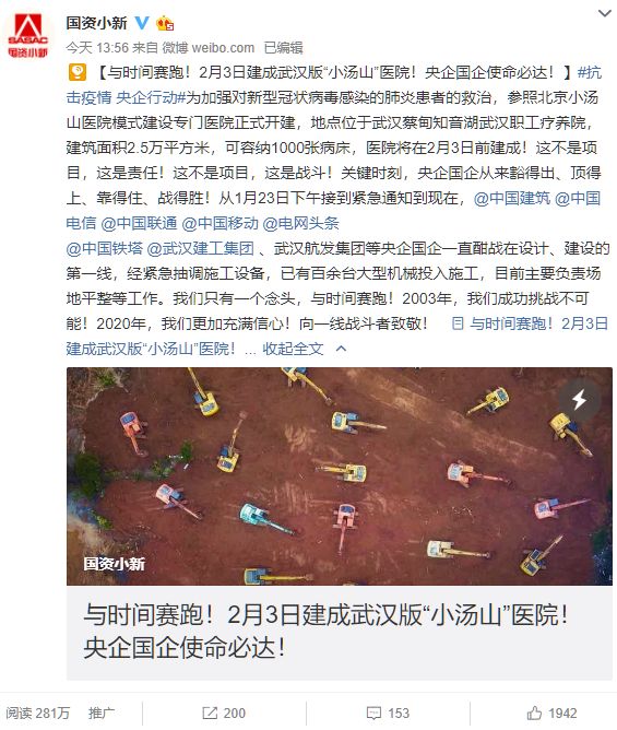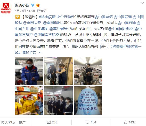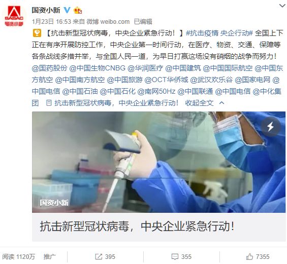 关注国资小新微博,#抗击疫情 央企行动#,实时为您报道
