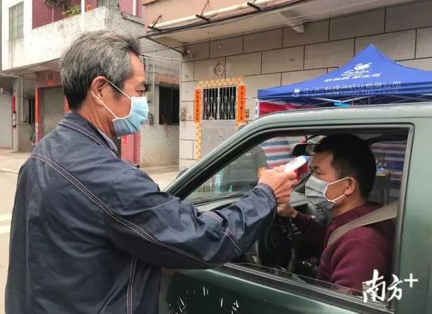 根据江门市在2月3日发布的《网格化疫情防控操作指引》,进入村、物业小区的外来人员,要详细登记个人信息,并进行体温测量。为此,桥美村将原有的8个出入口缩减到1个,所有进出村子的人员都要出示身份证件并测量体温。陈文夫妻俩今年过年没有回老家,但身份证上的外地地址却给他们带来了一些不便:出入口网格员需要反复核实外出进货的陈文是村里的住户,并且过年没有外出。