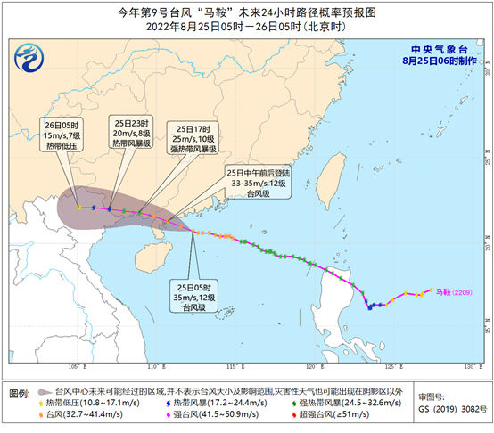 大风预报:25日08时到26日08时,南海中部和北部海域、琼州海峡、北部湾、西沙群岛附近海域、中沙群岛附近海域、广东中西部沿海、广西沿海、海南岛沿海将有6-9级大风,“马鞍”中心经过的附近海域或地区的风力可达10-12级,阵风13-14级。