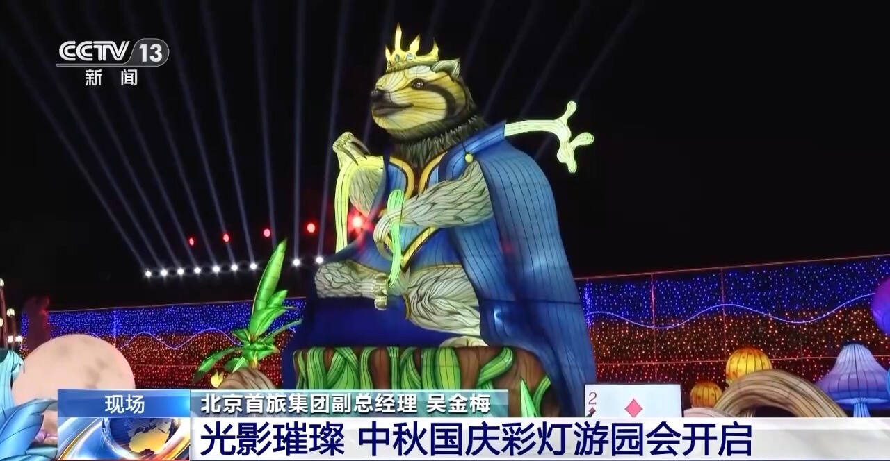 北京世界公园董事长 樊荣来:为了这次灯会我们也延长了闭园时间,有7条公交车站在公园门口设站,平日里我们每天的演出在40余场,到双节期间会增加到60余场的演出。