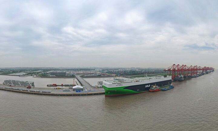 “安吉安盛”轮停泊在上海海通国际汽车码头(2025年5月15日摄)。