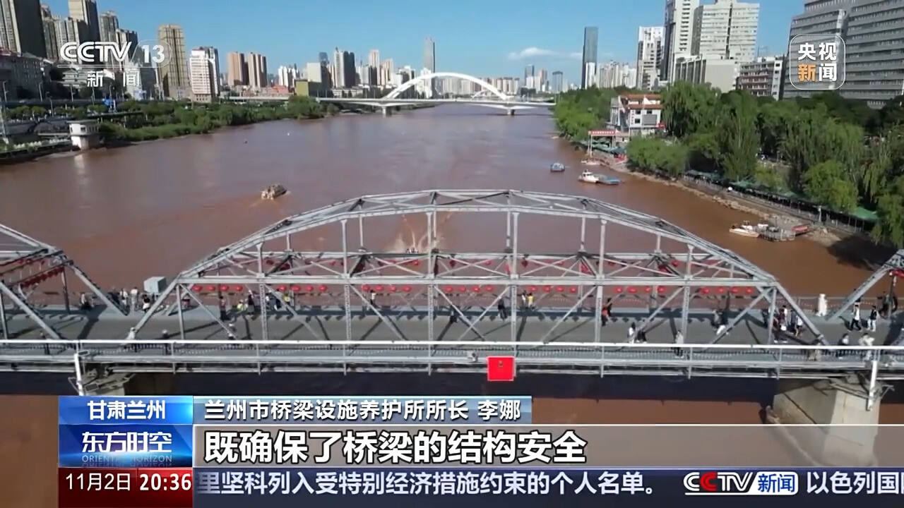 兰州市桥梁设施养护所所长 李娜:文物桥梁的维修,坚持“最小干预、最大保护”。比如,1954年为提高中山桥的载重,采用了在原桥增加供架的方案。既确保结构安全,又最大限度地保留桥梁的历史原貌。