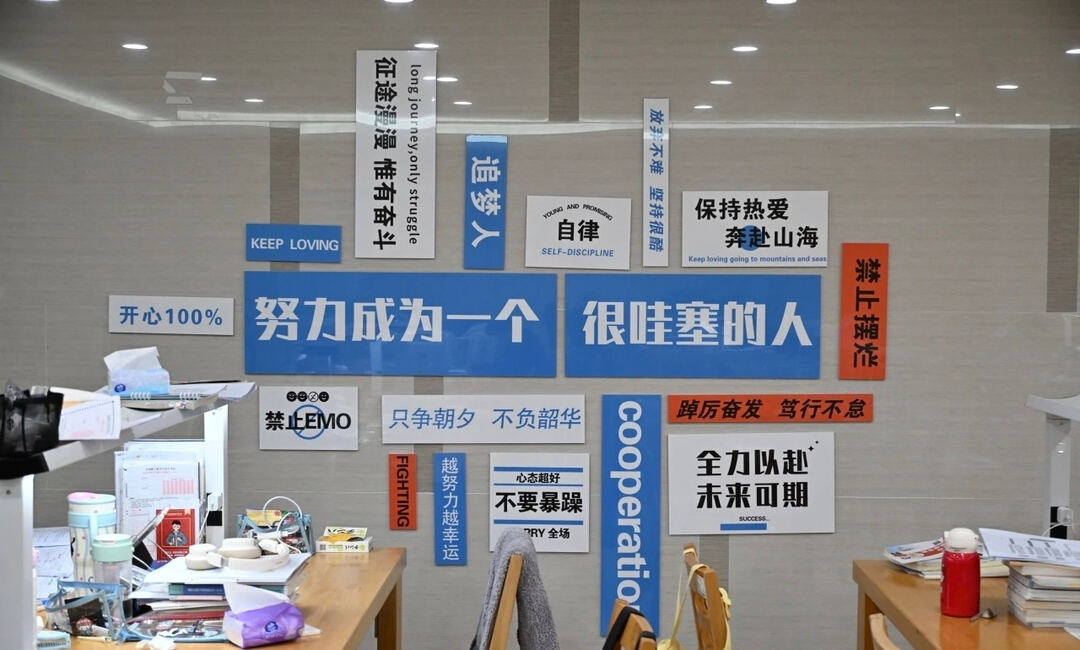 浙江树人学院的“加油墙”。学校供图